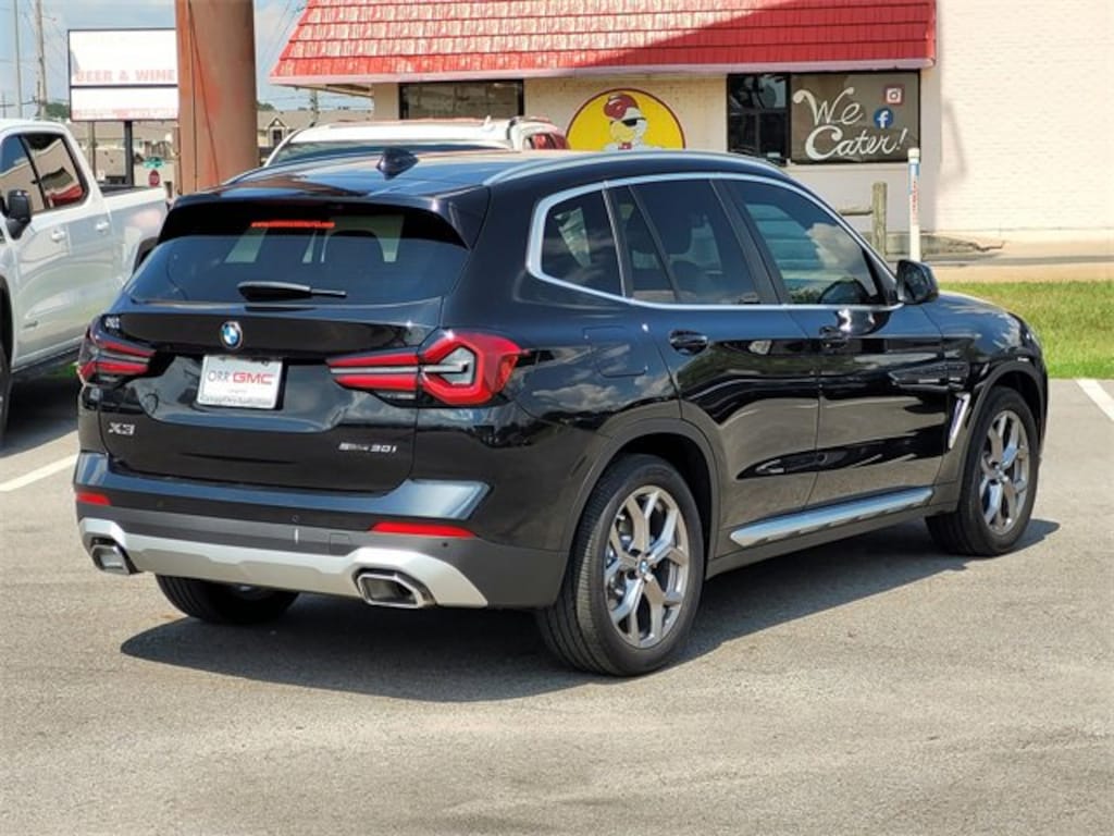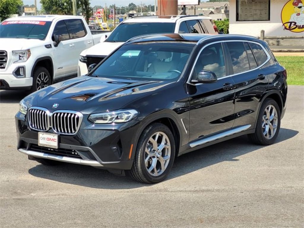 This 2022 BMW X3 comes equipped with Connected Package Pro, Premium Package (Gesture Control, Head-Up Display, Heated Front Seats, Heated Steering Wheel, Lumbar Support, and Panoramic Moonroof), 8-Speed Automatic Sport, Navigation, Navigation System, 12 Speakers, 3.385 Axle Ratio, 4-Wheel Disc Brakes, ABS brakes, Air Conditioning, Alloy wheels, AM/FM Radio, AM/FM radio: SiriusXM with 360L, Apple CarPlay & Android Auto Compatibility, Auto High-beam Headlights, Auto-dimming door mirrors, Auto-dimming Rear-View mirror, Automatic temperature control, BMW Assist eCall, BMW TeleServices, Brake assist, Bumpers: body-color, Comfort Access Keyless Entry, ConnectedDrive Services, Delay-off headlights, Driver door bin, Driver vanity mirror, Dual front impact airbags, Dual front side impact airbags, Electronic Stability Control, Emergency communication system: BMW Assist eCall, Enhanced Bluetooth, Exterior Parking Camera Rear, Four wheel independent suspension, Front anti-roll bar, Front Bucket Seats, Front Center Armrest, Front dual zone A/C, Front reading lights, Fully automatic headlights, Garage door transmitter, Genuine wood dashboard insert, Genuine wood door panel insert, Heated door mirrors, Hi-Fi Sound System, Illuminated entry, Knee airbag, Live Cockpit Pro w/Navigation, Low tire pressure warning, Memory seat, Occupant sensing airbag, Outside temperature display, Overhead airbag, Panic alarm, Passenger door bin, Passenger vanity mirror, Perforated SensaTec Upholstery, Power door mirrors, Power driver seat, Power Front Seats, Power Liftgate, Power passenger seat, Power steering, Power windows, Radio data system, Rain sensing wipers, Rear air conditioning, Rear anti-roll bar, Rear reading lights, Rear seat center armrest, Rear window defroster, Rear window wiper, Remote Engine Start, Remote keyless entry, Roof rack: rails only, Security system, SiriusXM w/360L, Speed control, Speed-sensing steering, Speed-Sensitive Wipers, Split folding rear seat, Spoiler, Sport Seats, Sport steering wheel, Steering wheel mounted audio controls, Tachometer, Telescoping steering wheel, Tilt steering wheel, Traction control, Trip computer, Turn signal indicator mirrors, Variably intermittent wipers, Wheels: 19 x 7.5 Y-Spoke (Style 693), and WiFi Hotspot. 23/29 City/Highway MPG 8-Speed Automatic Sport, Connected Package Pro, Gesture Control, Head-Up Display, Heated Front Seats, Heated Steering Wheel, Lumbar Support, Navigation, Navigation System, Panoramic Moonroof, Premium Package.
