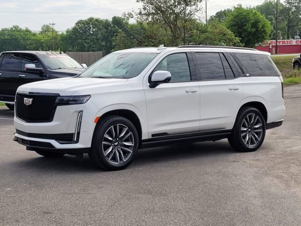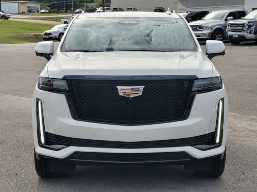 This 2021 Cadillac Escalade comes equipped with Driver Assist Tech Package (Adaptive Cruise Control, Air Ride Adaptive Suspension, Automatic Seat Belt Tightening, Enhanced Automatic Emergency Braking, Illuminating Front & Rear Sill Plates, Reverse Automatic Braking, and Soft Closing Front & Rear Doors), Interior Protection Package (LPO) (1st 2nd & 3rd Row All-Weather Floor Mats (LPO) and All-Weather Integrated Cargo Liner (LPO)), Preferred Equipment Group 1SC (Air Ionizer, AKG Studio 19-Speaker Audio System, Automatic Emergency Braking, Body-Color Door Handles, Door Lock & Latch Shields, Electronic Cruise Control w/Set & Resume Speed, Electronic Limited-Slip Differential, Enhanced Automatic Parking Assist, Glass Breakage Sensor, Hitch Guidance w/Hitch View, In-Vehicle Trailering System App, Integrated Trailer Brake Controller, Lane Keep Assist w/Lane Departure Warning, Power Panoramic Tilt-Sliding Sunroof, Rear Camera Mirror, Rear Camera Mirror Washer, Rear Cross Traffic Alert, Reconfigurable Full-Color Head-Up Display, Running Board Assist Steps, Theft-Deterrent Alarm System, Trailer Side Blind Zone Alert, Vehicle Inclination Sensor, and Vehicle Interior Movement Sensor), 4WD, Jet Black Leather, Navigation System, 16.9 Diagonal OLED Infotainment Screen, 19 Speakers, 2-Presets Memory For Driver Seat Adjuster, 3.23 Axle Ratio, 3rd row seats: split-bench, 4-Way Power Driver Lumbar Seat Adjuster, 4-Way Power Front Passenger Lumbar Seat Adjuster, 4-Wheel Disc Brakes, 8-Way Power Driver Seat Adjuster, 8-Way Power Front Passenger Seat Adjuster, ABS brakes, Adaptive suspension, Air Conditioning, Alloy wheels, AM/FM radio: SiriusXM with 360L, Apple CarPlay/Android Auto, Audio memory, Auto High-beam Headlights, Auto tilt-away steering wheel, Auto-dimming door mirrors, Auto-dimming Rear-View mirror, Automatic temperature control, Brake assist, Bumpers: body-color, Compass, Delay-off headlights, Driver door bin, Driver vanity mirror, Dual front impact airbags, Dual front side impact airbags, Electronic Stability Control, Emergency communication system: OnStar and Cadillac connected services capable, Four wheel independent suspension, Front anti-roll bar, Front Bucket Seats, Front Center Armrest w/Storage, Front dual zone A/C, Front reading lights, Fully automatic headlights, Garage door transmitter, HD Radio, Heads-Up Display, Heated & Ventilated Driver & Front Passenger Seats, Heated door mirrors, Heated Driver & Front Passenger Seats, Heated front seats, Heated rear seats, Heated steering wheel, Illuminated entry, Leather Seating Surfaces w/Precision Perf Inserts, Leather steering wheel, Low tire pressure warning, Magnetic Ride Control Suspension, Memory seat, Occupant sensing airbag, Outside temperature display, Overhead airbag, Overhead console, Panic alarm, Passenger door bin, Passenger vanity mirror, Power door mirrors, Power driver seat, Power Liftgate, Power moonroof, Power passenger seat, Power steering, Power windows, Power-Retractable Assist Steps, Radio data system, Radio: AM/FM/SiriusXM w/Navigation, Rain sensing wipers, Rear air conditioning, Rear anti-roll bar, Rear reading lights, Rear Seat Entertainment System, Rear window defroster, Rear window wiper, Remote keyless entry, Roof rack: rails only, Security system, SiriusXM w/360L, Speed control, Split folding rear seat, Spoiler, Steering wheel memory, Steering wheel mounted audio controls, Tachometer, Teen Driver, Telescoping steering wheel, Tilt steering wheel, Traction control, Trip computer, Turn signal indicator mirrors, Variably intermittent wipers, Ventilated front seats, Voltmeter, Wheel Locks, Wheels: 22 12-Spoke Polished Alloy, and Wireless Apple CarPlay/Wireless Android Auto. CARFAX One-Owner. Clean CARFAX. One Owner Carfax, 4WD, Jet Black Leather, 1st 2nd & 3rd Row All-Weather Floor Mats (LPO), Adaptive Cruise Control, Air Ionizer, Air Ride Adaptive Suspension, AKG Studio 19-Speaker Audio System, All-Weather Integrated Cargo Liner (LPO), Automatic Emergency B