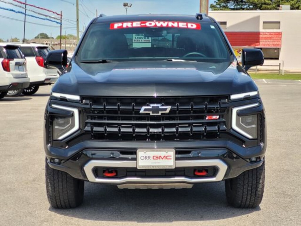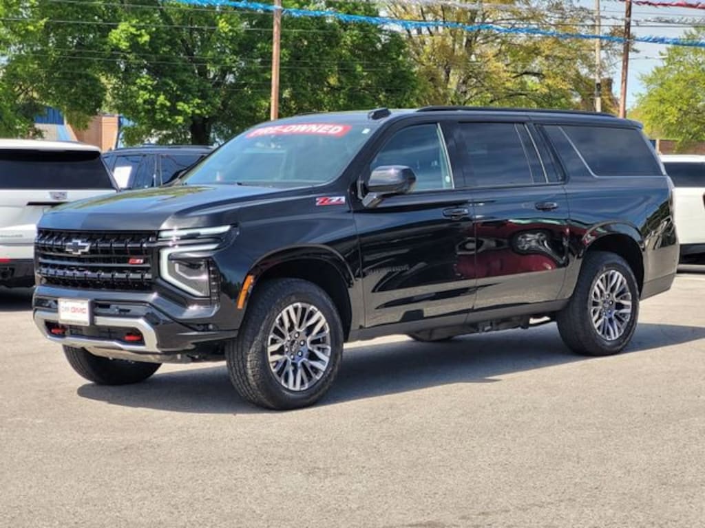 This 2025 Chevrolet Suburban comes equipped with License Plate Front Mounting Package, Preferred Equipment Group 2Z7 (2-Speed Active Electronic AutoTrac Transfer Case, 8-Way Power Front Passenger Seat Adjuster, Auto-Dimming Inside Rear-View Mirror, Black Tubular Assist Steps, Bright Front and Rear Door Sill Plates, Dual Exhaust System, Front High-Approach Angle Fascia, Front LED Fog Lamps, Heated Driver and Front Passenger Seats, Heavy-Duty Air Filter, Hill Descent Control, Memory Settings For Driver, Rear Power Liftgate, Red Recovery Hooks, Universal Home Remote, Wheels: 20 x 9 Bright Machined Aluminum, Wireless Phone Charging, and Z71 Exterior Features), Navigation system: Google built-in compatibility (select service plan required, terms and limitations apply), 2-Way Driver Power Lumbar Seat Adjuster, 2-Way Front Passenger Power Lumbar Seat Adjuster, 3.23 Rear Axle Ratio, 3rd row seats: split-bench, 4-Wheel Disc Brakes, 6 Speakers, 6-Speaker Audio System, 8-Way Power Driver Seat Adjuster, ABS brakes, Air Conditioning, Alloy wheels, AM/FM radio: SiriusXM with 360L, Apple CarPlay/Android Auto, Auto High-beam Headlights, Auto-dimming Rear-View mirror, Automatic temperature control, Brake assist, Bumpers: body-color, Compass, Delay-off headlights, Driver door bin, Driver vanity mirror, Dual front impact airbags, Dual front side impact airbags, Electronic Stability Control, Emergency communication system: OnStar Services capable, Exterior Parking Camera Rear, Four wheel independent suspension, Front anti-roll bar, Front Bucket Seats, Front Center Armrest, Front dual zone A/C, Front fog lights, Front reading lights, Fully automatic headlights, Garage door transmitter, Heated door mirrors, Heated front seats, Illuminated entry, Leather-Appointed Seating, Low tire pressure warning, Memory seat, Occupant sensing airbag, Outside temperature display, Overhead airbag, Overhead console, Panic alarm, Passenger door bin, Passenger vanity mirror, Power door mirrors, Power driver seat, Power Liftgate, Power passenger seat, Power steering, Power windows, Premium Smooth Ride Suspension, Radio data system, Radio: 17.7 Diagonal Advanced Color LCD Display, Rain sensing wipers, Rear air conditioning, Rear anti-roll bar, Rear reading lights, Rear seat center armrest, Rear window defroster, Rear window wiper, Remote keyless entry, Security system, SiriusXM with 360L Trial Subscription, Speed control, Speed-sensing steering, Split folding rear seat, Spoiler, Steering wheel mounted audio controls, Tachometer, Telescoping steering wheel, Tilt steering wheel, Traction control, Trip computer, Variably intermittent wipers, Voltmeter, and Wireless Apple CarPlay/Wireless Android Auto. CARFAX One-Owner. Priced below KBB Fair Purchase Price! 2-Speed Active Electronic AutoTrac Transfer Case, 8-Way Power Front Passenger Seat Adjuster, Auto-Dimming Inside Rear-View Mirror, Black Tubular Assist Steps, Bright Front and Rear Door Sill Plates, Dual Exhaust System, Front High-Approach Angle Fascia, Front LED Fog Lamps, Heated Driver and Front Passenger Seats, Heavy-Duty Air Filter, Hill Descent Control, License Plate Front Mounting Package, Memory Settings For Driver, Navigation system: Google built-in compatibility (select service plan required, terms and limitations apply), Preferred Equipment Group 2Z7, Rear Power Liftgate, Red Recovery Hooks, Universal Home Remote, Wheels: 20 x 9 Bright Machined Aluminum, Wireless Phone Charging, Z71 Exterior Features.