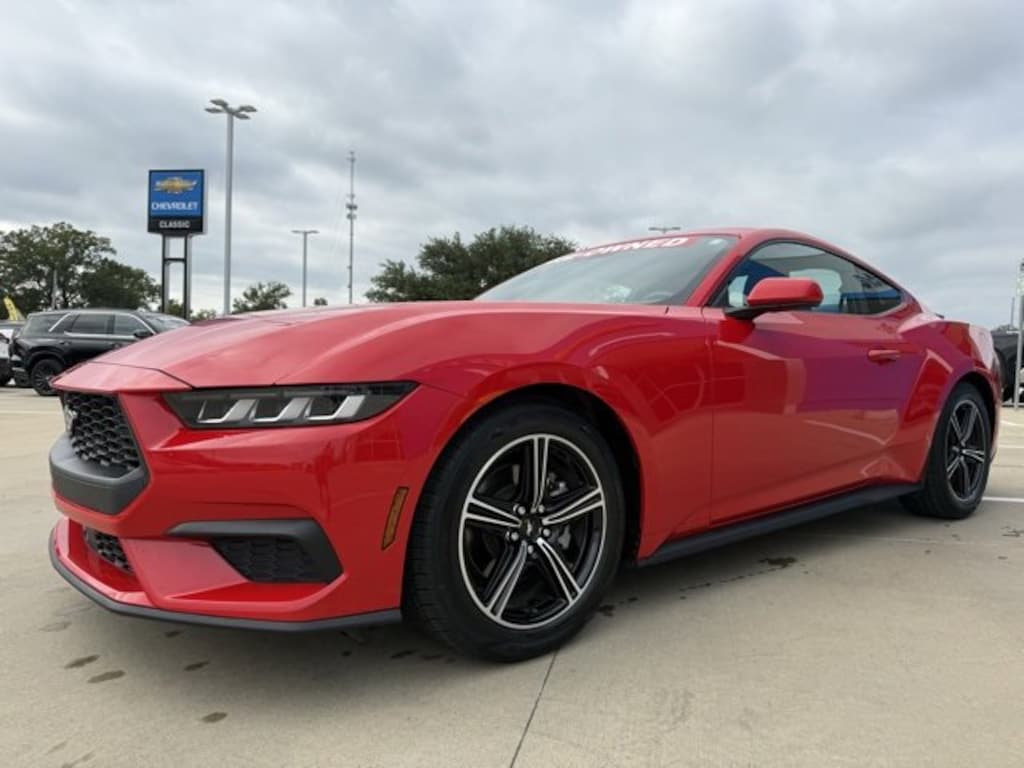 CARFAX One-Owner. 22/33 City/Highway MPG Race Red 2024 Ford Mustang EcoBoost Premium EcoBoost 2.3L I4 GTDi DOHC Turbocharged VCT RWD 10-Speed Automatic The 2024 Ford Mustang comes with the following features; Equipment Group 200A Standard Package, 4-Wheel Disc Brakes, 9 Speakers, ABS brakes, ActiveX Bucket Seats, Air Conditioning, Alloy wheels, AM/FM radio: SiriusXM with 360L, AM/FM Stereo, Auto High-beam Headlights, Auto-dimming Rear-View mirror, Automatic temperature control, Brake assist, Bumpers: body-color, Climate Controlled Heated/Cooled Front Seats, Compass, Delay-off headlights, Driver door bin, Driver vanity mirror, Dual front impact airbags, Dual front side impact airbags, Electronic Stability Control, Emergency communication system: 911 Assist, Exterior Parking Camera Rear, Four wheel independent suspension, Front anti-roll bar, Front Bucket Seats, Front Center Armrest, Front dual zone A/C, Front reading lights, Fully automatic headlights, HD Radio, Heated door mirrors, Heated front seats, Heated steering wheel, Illuminated entry, Knee airbag, Leather Shift Knob, Leather steering wheel, Low tire pressure warning, Occupant sensing airbag, Outside temperature display, Overhead airbag, Overhead console, Panic alarm, Passenger door bin, Passenger vanity mirror, Power door mirrors, Power driver seat, Power passenger seat, Power steering, Power windows, Radio data system, Rain sensing wipers, Rear anti-roll bar, Rear Parking Sensors, Rear window defroster, Remote keyless entry, SiriusXM w/360L, Speed control, Speed-sensing steering, Speed-Sensitive Wipers, Split folding rear seat, Spoiler, Sport steering wheel, Steering wheel mounted audio controls, SYNC 4.0 QNX, Tachometer, Telescoping steering wheel, Tilt steering wheel, Traction control, Trip computer, Turn signal indicator mirrors, Variably intermittent wipers, Ventilated front seats, Voltmeter, and Wheels: 18 x 8 Machined-Face Aluminum.