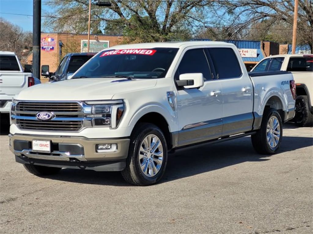 This 2025 Ford F-150 comes equipped with Equipment Group 601A High, 4WD, Navigation system: Connected Navigation, 14 Speakers, 4-Wheel Disc Brakes, ABS brakes, Adjustable pedals, Air Conditioning, Alloy wheels, AM/FM radio: SiriusXM with 360L, Auto High-beam Headlights, Auto tilt-away steering wheel, Auto-dimming door mirrors, Auto-dimming Rear-View mirror, Automatic temperature control, Brake assist, Chrome wheels, Compass, Delay-off headlights, Driver door bin, Driver vanity mirror, Dual front impact airbags, Dual front side impact airbags, Electronic Locking w/3.55 Axle Ratio, Electronic Stability Control, Emergency communication system: SYNC 4 911 Assist, Front anti-roll bar, Front Bucket Seats, Front Center Armrest, Front dual zone A/C, Front fog lights, Front License Plate Bracket, Front reading lights, Front wheel independent suspension, Fully automatic headlights, Garage door transmitter, Genuine wood dashboard insert, Heads-Up Display, Heated door mirrors, Heated front seats, Heated rear seats, Heated steering wheel, Illuminated entry, King Ranch Multicontour Leather Bucket Seats, Leather steering wheel, Low tire pressure warning, Memory seat, Occupant sensing airbag, Outside temperature display, Overhead airbag, Overhead console, Panic alarm, Passenger door bin, Passenger vanity mirror, Pedal memory, Power door mirrors, Power driver seat, Power moonroof, Power passenger seat, Power steering, Power windows, Radio data system, Radio: B&O Unleashed Sound System by Bang & Olufsen, Rain sensing wipers, Rear reading lights, Rear seat center armrest, Rear step bumper, Rear window defroster, Remote keyless entry, Security system, Speed control, Split folding rear seat, Steering wheel memory, Steering wheel mounted audio controls, SYNC 4 w/Enhanced Voice Recognition, Tachometer, Telescoping steering wheel, Tilt steering wheel, Tough Bed Spray-In Bedliner, Traction control, Trip computer, Turn signal indicator mirrors, Variably intermittent wipers, Ventilated front seats, Voltmeter, and Wheels: 20 Chrome-Like PVD. CARFAX One-Owner. 4WD, Equipment Group 601A High, Navigation system: Connected Navigation.