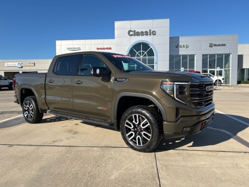 CARFAX One-Owner. Classic CDJR in Texarkana is proud to offer this attractive 2023 GMC Sierra 1500 in Deep Bronze Metallic. This 2023 GMC Sierra 1500 comes with the following features; AT4 Preferred Package (Adaptive Cruise Control, Power Sliding Rear Window w/Rear Defogger, and Universal Home Remote), AT4 Premium Package (Off-Road High Clearance Step (LPO)), Preferred Equipment Group 4SB (120-Volt Bed Mounted Power Outlet, 120-Volt Instrument Panel Power Outlet, 2 Charge/Data USB Ports Inside Center Console, 2 Type-C Charge-Only Rear USB Ports, 2 USB Ports, 220 Amp Alternator, Auto-Locking Rear Differential, Black Chrome Header & Grille Insert Bars, Color-Keyed Carpeting Floor Covering, Compass, Deep-Tinted Glass, Electric Rear-Window Defogger, Electrical Steering Column Lock, Floor-Mounted Center Console, Front Prem Floor Liners w/Removable Carpet Insert, Front Rainsensing Wipers, GMC Connected Access Capable, HD Surround Vision, Heated 2nd Row Outboard Seats, Heated Driver & Front Outboard Passenger Seating, Heavy-Duty Air Filter, Hill Descent Control, Hitch Guidance w/Hitch View, In-Vehicle Trailering App, Integrated Trailer Brake Controller, Keyless Open & Start, LED Cargo Area Lighting, OnStar & GMC Connected Services Capable, Perimeter Lighting, Power Door Locks, Power Front Passenger Windows w/Express Up/Down, Power Front Windows w/Driver Express Up/Down, Power Rake & Telescoping Steering Column, Power Rear Windows w/Express Down, Premium Bose 7-Speaker Sound System, Push Button Start, Rear Cross Traffic Braking, Rear Pedestrian Detection, Rear Prem Floor Liners w/Removable Carpet Insert, Rear Wheelhouse Liners, Red Recovery Hooks, Remote Vehicle Starter System, SiriusXM w/360L, Spray-On Pickup Bed Liner w/AT4 Logo, Steering Wheel Audio Controls, Theft Deterrent System (Unauthorized Entry), Trailer Camera Provisions, Trailer Side Blind Zone Alert, Ultrasonic Front & Rear Park Assist, Ventilated Driver & Front Passenger Seats, Wi-Fi Hotspot Capable, Wireless Charging, and Wireless Phone Projection), Technology Package (Bed View Camera, Multicolor 15" Diagonal Head-Up Display, and Rear Camera Mirror), Trailering Package (Hitch Guidance), 10-Speed Automatic, 4WD, Jet Black With Kalahari Accents Leather, 10-Way Power Driver Seat Adjuster w/Lumbar, 10-Way Power Passenger Seat Adjuster w/Lumbar, 170 Amp Alternator, 18" x 8.5" Machined Aluminum Wheels, 3.23 Rear Axle Ratio, 4-Wheel Disc Brakes, 7 Speakers, ABS brakes, Air Conditioning, Alloy wheels, AM/FM radio, Apple CarPlay/Android Auto, Auto High-beam Headlights, Auto-dimming door mirrors, Auto-dimming Rear-View mirror, Automatic Emergency Braking, Automatic temperature control, Auxiliary External Transmission Oil Cooler, Block heater, Brake assist, Buckle to Drive, Bumpers: body-color, Cat-Back Performance Exhaust (LPO), Delay-off headlights, Driver door bin, Driver Memory, Driver vanity mirror, Dual front impact airbags, Dual front side impact airbags, Electronic Stability Control, Emergency communication system: OnStar and GMC connected services capable, Engine Block Heater, External Engine Oil Cooling, Following Distance Indicator, Forward Collision Alert, Front anti-roll bar, Front Bucket Seats, Front Center Armrest, Front dual zone A/C, Front fog lights, Front License Plate Kit, Front Pedestrian Braking, Front reading lights, Front wheel independent suspension, Fully automatic headlights, Heated door mirrors, Heated front seats, Heated rear seats, Heated steering wheel, Illuminated entry, IntelliBeam Automatic High Beam On/Off, Lane Keep Assist w/Lane Departure Warning, Low tire pressure warning, Memory seat, Navigation System, Not Equipped w/Steering Column Lock, Occupant sensing airbag, Off-Road Suspension, Outside temperature display, Overhead airbag, Overhead console, Panic alarm, Passenger door bin, Passenger vanity mirror, Perforated Front Leather Seat Trim, Power door mirrors, Power driver seat, Power passenger seat, Power steering, Power Sunroof, Power window