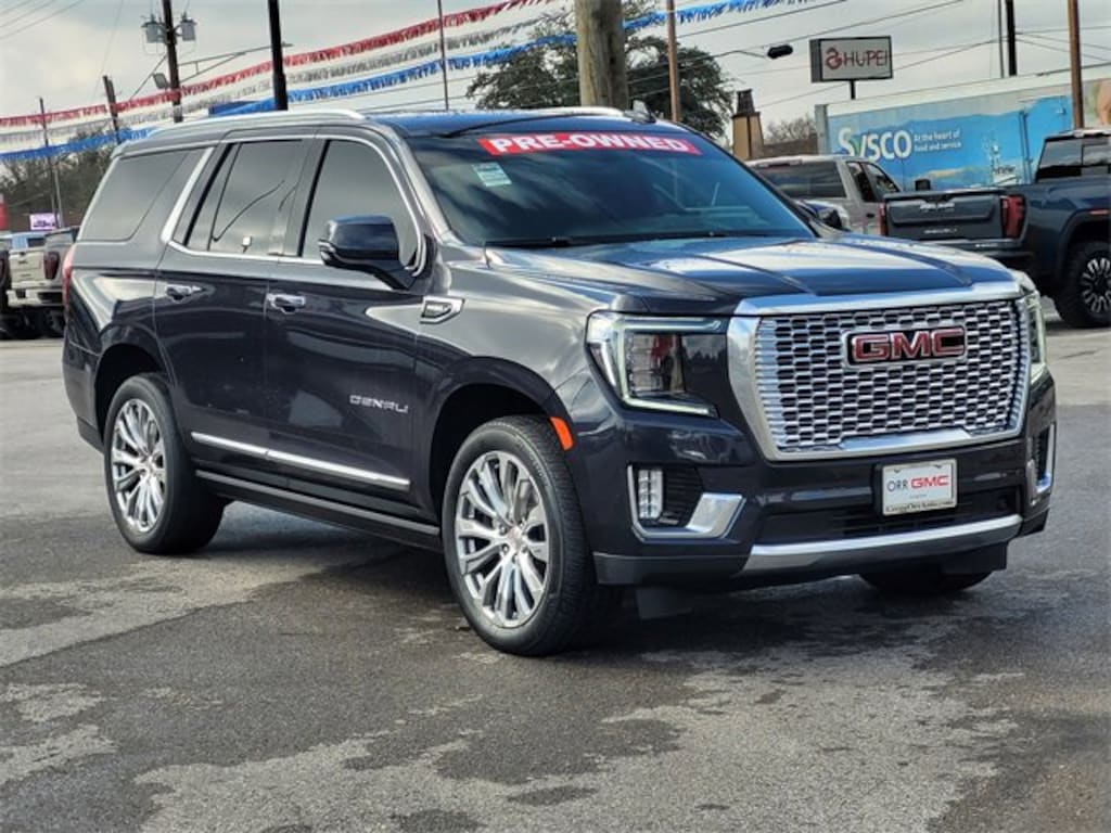 This 2023 GMC Yukon comes equipped with License Plate Front Mounting Package, Preferred Equipment Group 5SA (15 Diagonal Multi-Color Head-Up Display, 2 Presets For Outside Rearview Mirrors, 3 Years of GMC Connected Services, 3 Years of OnStar Safety & Security, 3rd Row 60/40 Power-Folding Split-Bench Seat, Bose 14-Speaker Surround w/CenterPoint, Bright Front & Rear Door Sill Plates, Chrome Door Handles w/Body-Color Strip, Dual Exhaust System, Enhanced Automatic Emergency Braking, Floor Console, Galvano Bodyside Moldings, Hands-Free Power Programmable Rear Liftgate, HD Surround Vision, Heated & Ventilated Driver & Front Passenger Seats, Heated 2nd Row Outboard Position Seats, Heated Driver & Front Passenger Seats, Heated Steering Wheel, Hill Descent Control, Inside Rear-View Auto-Dimming Mirror, Outside Heated Power-Adjustable Mirrors, Power Release 2nd Row Bucket Seats, Power Tilt & Telescopic Steering Column, Rear Pedestrian Alert, Safety Alert Seat, Universal Home Remote, and Wireless Charging), 4WD, Navigation System, 1.5 kW Heater/Defrost Air System, 14 Speakers, 250 Amps Alternator, 3 Years of OnStar Safety & Security (DISC), 3.23 Rear Axle Ratio, 3rd row seats: split-bench, 4-Wheel Disc Brakes, 850 Cold-Cranking Amps Battery, ABS brakes, Adaptive Cruise Control, Adaptive suspension, Air Conditioning, Alloy wheels, AM/FM radio: SiriusXM with 360L, AM/FM Stereo, Apple CarPlay/Android Auto, Auto High-beam Headlights, Auto-dimming door mirrors, Auto-dimming Rear-View mirror, Auto-leveling suspension, Automatic Emergency Braking, Automatic temperature control, Bodyside moldings, Brake assist, Bumpers: body-color, Compass, Delay-off headlights, Diesel B20 Fuel, Driver door bin, Driver vanity mirror, Dual front impact airbags, Dual front side impact airbags, Electronic Stability Control, Emergency communication system: OnStar and GMC connected services capable, Engine Block Heater, Floor Console w/Storage Area, Following Distance Indicator, Forward Collision Alert, Four wheel independent suspension, Front & Rear Park Assist, Front anti-roll bar, Front Bucket Seats, Front Center Armrest, Front dual zone A/C, Front fog lights, Front Pedestrian Braking, Front reading lights, Fully automatic headlights, Garage door transmitter, Heads-Up Display, Heated door mirrors, Heated front seats, Heated rear seats, Heated steering wheel, Illuminated entry, IntelliBeam Automatic High Beam On/Off, Lane Change Alert w/Side Blind Zone Alert, Lane Keep Assist w/Lane Departure Warning, Low tire pressure warning, Magnetic Ride Control Suspension, Memory seat, Occupant sensing airbag, Outside temperature display, Overhead airbag, Overhead console, Panic alarm, Passenger door bin, Passenger vanity mirror, Perforated Leather Seating Surfaces, Power door mirrors, Power driver seat, Power Liftgate, Power passenger seat, Power Release 2nd Row 60/40 Split-Folding Bench Seat, Power steering, Power windows, Power-Retractable Assist Steps, Rain sensing wipers, Rear air conditioning, Rear anti-roll bar, Rear Cross Traffic Alert, Rear reading lights, Rear window defroster, Rear window wiper, Remote keyless entry, Roof rack: rails only, Security system, Single Outlet Exhaust System, SiriusXM w/360L, Speed control, Speed-sensing steering, Split folding rear seat, Spoiler, Steering wheel memory, Steering wheel mounted audio controls, Tachometer, Telescoping steering wheel, Tilt steering wheel, Traction control, Trip computer, Turn signal indicator mirrors, Upper & Lower Active Aero Shutters, Variably intermittent wipers, Ventilated front seats, Voltmeter, Wheel Locks (Set of 4) (LPO), Wheels: 20 x 9 6-Spoke Polished Aluminum, and Wheels: 22 x 9 Bright Machined Aluminum. CARFAX One-Owner. Clean CARFAX. 20/26 City/Highway MPG One Owner Carfax, 4WD, 15 Diagonal Multi-Color Head-Up Display, 2 Presets For Outside Rearview Mirrors, 3 Years of GMC Connected Services, 3 Years of OnStar Safety & Security, 3rd Row 60/40 Power-Folding Split-Bench Seat, Bose 14-Speaker