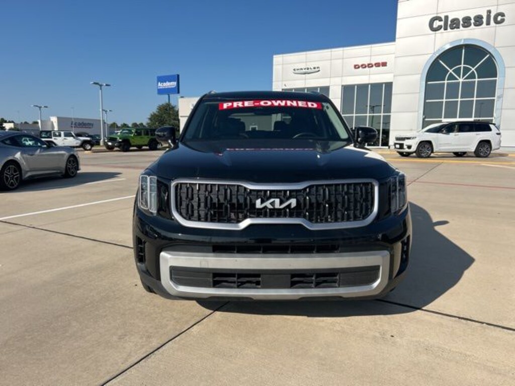 The 2024 Kia Telluride comes with the following features; EX Captain's Chair Package (2nd Row Captain Chairs), 3.510 Axle Ratio, 3rd row seats: split-bench, 4-Wheel Disc Brakes, 6 Speakers, ABS brakes, Air Conditioning, Alloy wheels, AM/FM radio: SiriusXM, Apple CarPlay & Android Auto, Auto High-beam Headlights, Auto-dimming Rear-View mirror, Automatic temperature control, Brake assist, Bumpers: body-color, Carpet Floor Mats, Compass, Delay-off headlights, Driver door bin, Driver vanity mirror, Dual front impact airbags, Dual front side impact airbags, Electronic Stability Control, Emergency communication system: 911 Connect, Exterior Parking Camera Rear, Four wheel independent suspension, Front anti-roll bar, Front Bucket Seats, Front Center Armrest, Front dual zone A/C, Front reading lights, Fully automatic headlights, Heated & Ventilated Front Bucket Seats, Heated door mirrors, Heated front seats, Illuminated entry, Knee airbag, Leather Seat Trim, Leather Shift Knob, Leather steering wheel, Low tire pressure warning, Navigation System, Occupant sensing airbag, Outside temperature display, Overhead airbag, Overhead console, Panic alarm, Passenger door bin, Passenger vanity mirror, Power door mirrors, Power driver seat, Power Liftgate, Power moonroof, Power passenger seat, Power steering, Power windows, Radio data system, Radio: AM/FM Display Audio System, Rear air conditioning, Rear anti-roll bar, Rear audio controls, Rear reading lights, Rear seat center armrest, Rear side impact airbag, Rear window defroster, Rear window wiper, Reclining 3rd row seat, Remote keyless entry, Roof rack: rails only, Security system, Smart Key w/ Push Button and Remote Start, Speed control, Speed-sensing steering, Split folding rear seat, Spoiler, Steering wheel mounted audio controls, Tachometer, Telescoping steering wheel, Tilt steering wheel, Traction control, Trip computer, Turn signal indicator mirrors, Variably intermittent wipers, Ventilated front seats, and Wheels: 20" x 7.5" Black Finish.