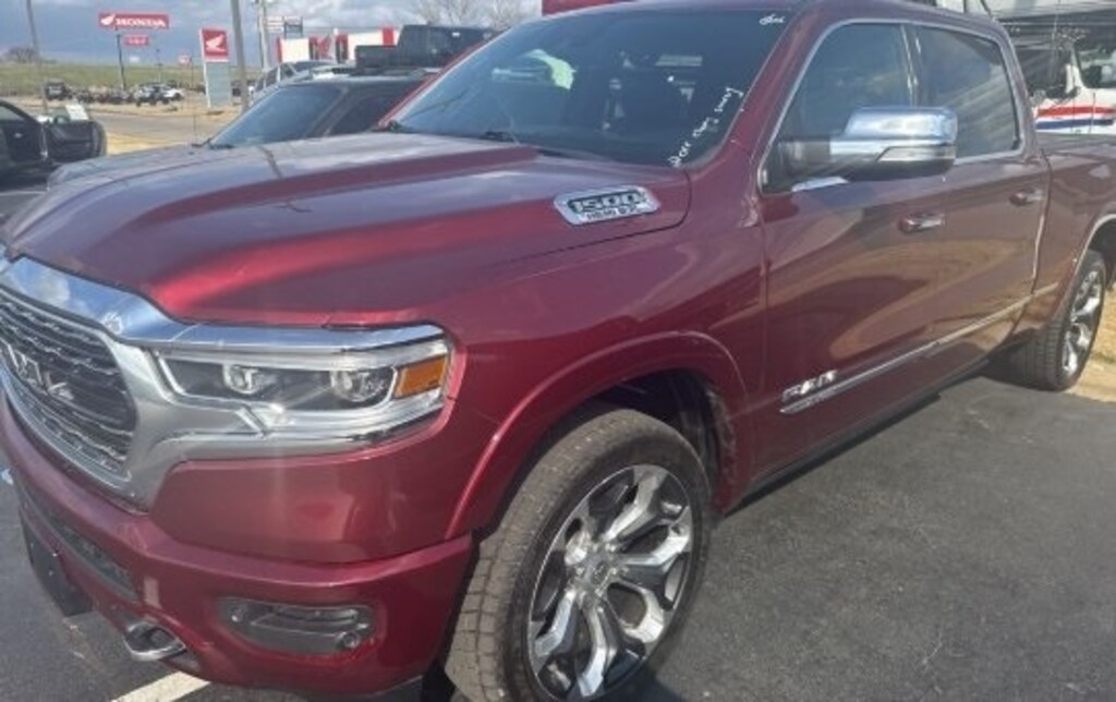 CARFAX One-Owner. Clean CARFAX. Delmonico Red Pearlcoat Limited 4WD 8-Speed Automatic HEMI 5.7L V8 Multi Displacement VVT **NAVIGATION**, **4WD**, **LOCAL TRADE**, **NON SMOKER**, **ONE OWNER**, **LEATHER INTERIOR**, **KEYLESS ENTRY**, **REMOTE START**, **HEATED / COOLED SEATS**, **ADAPTIVE CRUISE CONTROL**, **WE DELIVER ANYWHERE**, **REAR VIEW CAMERA**, **BLUETOOTH HANDES FREE CALLING**, **TOWING PACKAGE**, 1-Yr SiriusXM Guardian Trial, 10 Speakers, 12" Touchscreen Display, 4-Wheel Disc Brakes, 48V Belt Starter Generator, ABS brakes, Adaptive Cruise Control w/Stop & Go, Adjustable pedals, Advanced Brake Assist, Air Conditioning, Alloy wheels, AM/FM radio: SiriusXM with 360L, Apple CarPlay, Apple CarPlay/Android Auto, Audio memory, Auto High-beam Headlights, Auto-dimming door mirrors, Auto-dimming Rear-View mirror, Auto-leveling suspension, Automatic temperature control, Body Color Bumper Group, Body Color Front Bumper, Body Color Rear Bumper w/Step Pads, Bodyside moldings, Brake assist, Bumpers: chrome, Compass, Delay-off headlights, Deployable Bed Step, Disassociated Touchscreen Display, Dome Dual LED Reading Lamp, Driver door bin, Driver vanity mirror, Dual front impact airbags, Dual front side impact airbags, Dual-Pane Panoramic Sunroof, Electronic Stability Control, Emergency communication system: SiriusXM Guardian, Front anti-roll bar, Front Bucket Seats, Front Center Armrest w/Storage, Front dual zone A/C, Front fog lights, Front reading lights, Front wheel independent suspension, Full Speed Forward Collision Warning Plus, Fully automatic headlights, Garage door transmitter, Genuine wood console insert, Genuine wood dashboard insert, Genuine wood door panel insert, Google Android Auto, GPS Antenna Input, GPS Navigation, harman/kardon 19 Speaker Premium Sound, HD Radio, Heated door mirrors, Heated front seats, Heated rear seats, Heated steering wheel, Illuminated entry, Integrated Center Stack Radio, Lane Keep Assist, Leather steering wheel, LED Dome/Reading Lamp, Limited Level 1 Equipment Group, Low tire pressure warning, Manufacturer's Statement of Origin, Memory seat, Navigation System, No Satellite Coverage w/HI/AK/PR/VI/GU, Occupant sensing airbag, Outside temperature display, Overhead airbag, Overhead console, Panic alarm, Parallel & Perp Park Assist w/Stop, ParkView Rear Back-Up Camera, Passenger door bin, Passenger vanity mirror, Pedal memory, Power door mirrors, Power driver seat, Power passenger seat, Power steering, Power windows, Premium Leather Trimmed Bucket Seats, Quick Order Package 25M Limited, Radio data system, Radio: Uconnect 12 w/Navigation, Rain sensing wipers, Rear anti-roll bar, Rear seat center armrest, Rear step bumper, Rear window defroster, Remote CD player, Remote keyless entry, Security system, SiriusXM Satellite Radio, SiriusXM Traffic Plus, SiriusXM Travel Link, SiriusXM w/360L, Speed control, Split folding rear seat, Steering wheel mounted audio controls, Tachometer, Telescoping steering wheel, Tilt steering wheel, Traction control, Trailer Brake Control, Trip computer, Turn signal indicator mirrors, USB Host Flip, Variably intermittent wipers, Ventilated front seats, Ventilated Rear Seats, Voltmeter, Wheels: 20" x 9" Polished w/Inserts, Wheels: 22" x 9" Polish/Painted w/Inserts.
