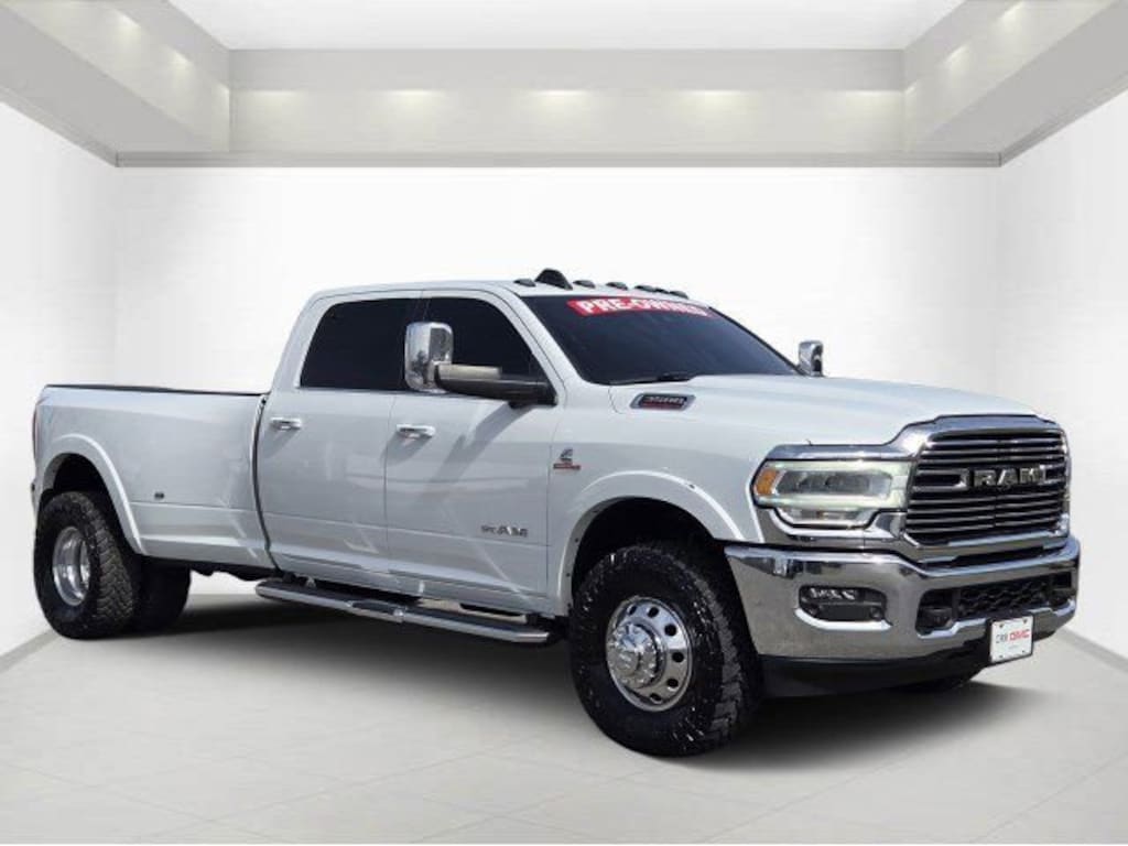 This 2021 Ram 3500 comes equipped with Bed Utility Group (LED Bed Lighting, MOPAR Deployable Bed Step, and MOPAR Spray In Bedliner), Chrome Appearance Group (Chrome Belt Moldings and Chrome Tow Hooks), Laramie Level An Equipment Group (2nd Row In Floor Storage Bins, Auto High Beam Headlamp Control, Exterior Mirrors w/Memory, Foam Bottle Insert (Door Trim Panel), Mirror-Mounted Aux Reverse Lamps, Power Adjustable Convex Aux Mirrors, Power Adjustable Pedals w/Memory, Power Chrome Tow Mirrors w/Convex Spotter & Memory, Radio/Driver Seat/Mirrors/Pedals Memory, Rain Sensitive Windshield Wipers, Remote Tailgate Release, and Ventilated Front Seats), Quick Order Package 2HH Laramie, Safety Group B (Adaptive Cruise Control w/Stop, Adaptive Steering System, Digital Rearview Mirror, Full Speed Forward Collision Warning Plus, and Lane Keep Assist), Towing Technology Group B (CTR Stop Lamp w/Cargo View Camera, Surround View Camera System, and Trailer Reverse Guidance), GPS Navigation, #1 Seat Foam Cushion, 1-Year SiriusXM Guardian Trial, 10 Speakers, 115V Auxiliary Rear Power Outlet, 12 Touchscreen Display, 2 Way Rear Headrest Seat, 220 Amp Alternator, 4 Way Front Headrests, 4-Wheel Disc Brakes, 4G LTE Wi-Fi Hot Spot, 5-Year SiriusXM Traffic Service, 5-Year SiriusXM Travel Link Service, 50 Gallon Fuel Tank, 5th Wheel/Gooseneck Towing Prep Group, 6000# Front Axle w/Hub Ext, 8.4 Touchscreen Display, ABS brakes, Active Noise Control System, Adjustable pedals, Air Conditioning, Alloy wheels, AM/FM radio: SiriusXM, Apple CarPlay, Apple CarPlay/Android Auto, Auto-dimming Rear-View mirror, Automatic temperature control, Box & Rear Fender Clearance Lamps, Brake assist, Bumpers: chrome, Center Hub, Chrome Flat Cab-Length Side Steps, Clearance Lamps, Compass, Delay-off headlights, Disassociated Touchscreen Display, Driver door bin, Driver vanity mirror, Dual front impact airbags, Dual front side impact airbags, Dual Rear Wheels, Electronic Stability Control, Electronically Controlled Throttle, Folding Flat Load Floor Storage, For Details Visit DriveUconnect.com, Front anti-roll bar, Front Bumper Sight Shields, Front Center Armrest w/Storage, Front dual zone A/C, Front fog lights, Front License Plate Bracket, Front reading lights, Front Seat Back Map Pockets, Fully automatic headlights, Garage door transmitter, Google Android Auto, GPS Antenna Input, HD Radio, Heated door mirrors, Heated Front Seats, Heated front seats, Heated Steering Wheel, Heated steering wheel, High Back Seats, Illuminated entry, Integrated Center Stack Radio, Integrated Voice Command w/Bluetooth, Leather steering wheel, Leather Trim 40/20/40 Bench Seat, Low tire pressure warning, MOPAR Front & Rear Rubber Floor Mats, Occupant sensing airbag, Outside temperature display, Overhead airbag, Overhead console, Panic alarm, ParkView Rear Back-Up Camera, Passenger door bin, Passenger vanity mirror, Power 8-Way Adjustable Passenger Seat, Power Adjust 8-Way Driver Seat, Power door mirrors, Power driver seat, Power passenger seat, Power steering, Power windows, Radio data system, Radio: Uconnect 12.0 w/Navigation, Radio: Uconnect 4 w/8.4 Display, Rear 60/40 Folding Seat, Rear reading lights, Rear seat center armrest, Rear step bumper, Rear Wheelhouse Liners, Rear window defroster, Remote keyless entry, Security system, Selectable Tire Fill Alert, SiriusXM Satellite Radio, SiriusXM Traffic Plus, SiriusXM Travel Link, SiriusXM w/360L, Speed control, Split folding rear seat, Steering wheel mounted audio controls, Tachometer, Tilt steering wheel, Tip Start, Tire Pressure Monitoring Delete, Traction control, Trip computer, Turn signal indicator mirrors, Variably intermittent wipers, Voltmeter, Wheels: 17 x 6.0 Polished Aluminum, and Wheels: 18 x 8.0 Polished AluminuM. CARFAX One-Owner. Clean CARFAX. One Owner Carfax, 2nd Row In Floor Storage Bins, Adaptive Cruise Control w/Stop, Adaptive Steering System, Auto High Beam Headlamp Control, Bed Util