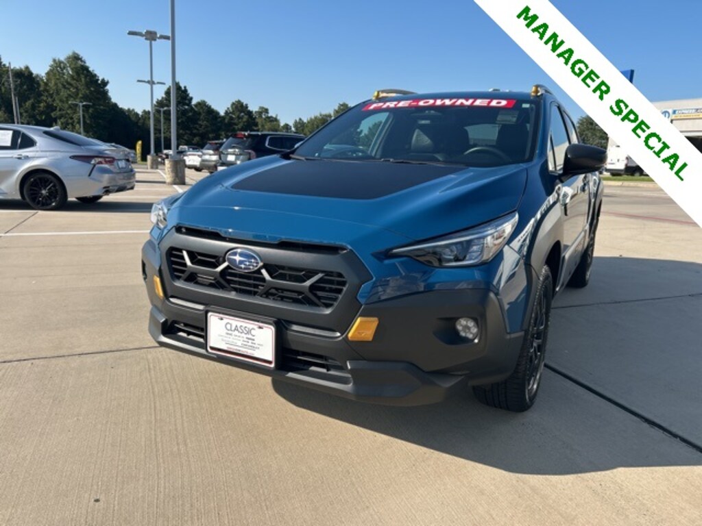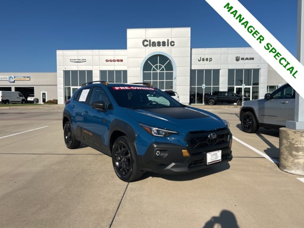 Clean CARFAX. 25/29 City/Highway MPG Classic CDJR in Texarkana is proud to offer this attractive 2024 Subaru Crosstrek in Blue Pearl. This 2024 Subaru Crosstrek comes with the following features; Crosstrek Mirror Package (Auto-Dimming Exterior Mirror w/Approach Light and Auto-Dimming Mirror w/Compass & HomeLink), harman/kardon Aud & Pwr Moonroof & Pwr Driver Seat (10-Way Power Driver's Seat, harman/kardon Surround Sound Speaker System, and Power Moonroof), 2nd Row Sunshade, 4-Wheel Disc Brakes, 4.11 Axle Ratio, 6 Speakers, ABS brakes, Air Conditioning, Alloy wheels, AM/FM radio: SiriusXM, Anti-whiplash front head restraints, Auto High-beam Headlights, Automatic temperature control, Brake assist, Bumpers: body-color, Carpeted Floor Mats, Driver door bin, Driver vanity mirror, Dual front impact airbags, Dual front side impact airbags, Electronic Stability Control, Emergency communication system: STARLINK Safety and Security (Subscription Required), Exterior Parking Camera Rear, Four wheel independent suspension, Front anti-roll bar, Front Bucket Seats, Front Center Armrest, Front dual zone A/C, Front fog lights, Front reading lights, Fully automatic headlights, Heated door mirrors, Heated Front Bucket Seats, Heated front seats, Illuminated entry, Knee airbag, Leather Shift Knob, Low tire pressure warning, Occupant sensing airbag, Outside temperature display, Overhead airbag, Overhead console, Panic alarm, Passenger door bin, Passenger vanity mirror, Power door mirrors, Power steering, Power windows, Radio data system, Radio: Subaru STARLINK 11.6" Multimedia Plus Sys, Rear anti-roll bar, Rear seat center armrest, Rear window defroster, Rear window wiper, Remote keyless entry, Security system, Speed control, Speed-sensing steering, Split folding rear seat, Spoiler, STARLINK/Apple CarPlay/Android Auto, Steering wheel mounted audio controls, Sunshade - Windshield, Tachometer, Telescoping steering wheel, Tilt steering wheel, Traction control, Trip computer, Turn signal indicator mirrors, Variably intermittent wipers, Wheels: 17" x 7.0J Matte Black Aluminum Alloy, and Wilderness StarTex Upholstery.