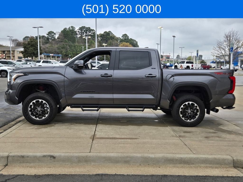 This 2025 Toyota Tundra comes equipped with, 4WD, Black Leather, 122L Fuel Tank, 18" Alloy Wheels, 3.31 Axle Ratio, 3" Lift Kit, 4-Wheel Disc Brakes, 9 Speakers, ABS brakes, Air Conditioning, Alloy wheels, AM/FM radio: SiriusXM, Apple CarPlay/Android Auto, Auto High-beam Headlights, Automatic Power Tailgate with Easy Closing, Automatic temperature control, Bed Step (TMS), Blind Spot Monitor, Blind Spot Monitor w/Lane Change Assist, Brake assist, Bumpers: body-color, Delay-off headlights, Driver door bin, Driver vanity mirror, Dual front impact airbags, Dual front side impact airbags, Electronic Stability Control, Emergency communication system: Safety Connect (10-year trial), Exterior Parking Camera Rear, Fabric Seat Trim (FB), Front & Rear Mud Guards, Front anti-roll bar, Front Bucket Seats, Front Center Armrest, Front fog lights, Front reading lights, Front Spoiler Delete, Front wheel independent suspension, Fully automatic headlights, Heated door mirrors, Illuminated entry, Knee airbag, Leather Steering Wheel, Low tire pressure warning, Occupant sensing airbag, Outside temperature display, Overhead airbag, Overhead console, Panic alarm, Parking Support Alert/Brake, Passenger door bin, Passenger vanity mirror, Power door mirrors, Power driver seat, Power steering, Power windows, Radio data system, Radio: Audio Multimedia System, Rear reading lights, Rear step bumper, Rear window defroster, Remote keyless entry, Safety Connect, Security system, SofTex Seat Trim, Speed control, Speed-sensing steering, Split folding rear seat, SR5 Convenience Package, SR5 Painted Mirror, Steering wheel mounted audio controls, Tachometer, Telescoping steering wheel, Tilt steering wheel, Traction control, TRD Off-Road Premium Package, Trip computer, Variably intermittent wipers, Voltmeter, Wheels: TRD 18" Off Road, 4WD, Black Leather. Odometer is 3022 miles below market average!