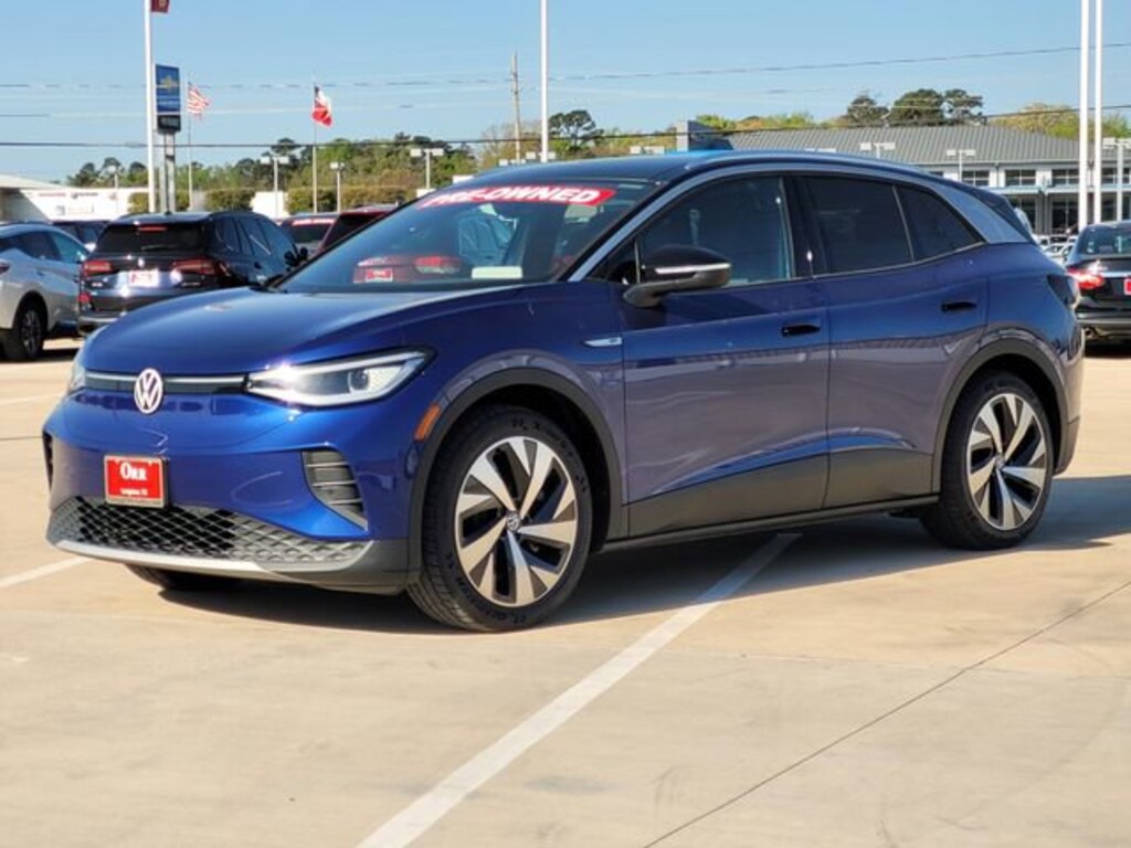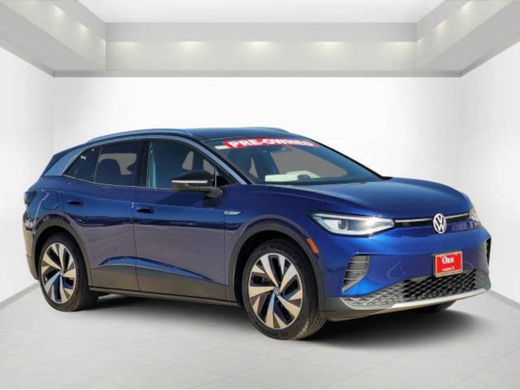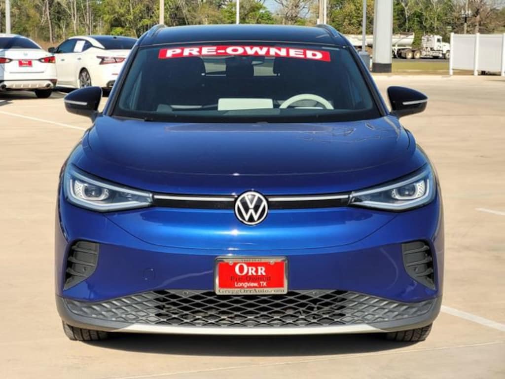 This 2021 Volkswagen ID.4 comes equipped with Navigation System, 4 Wheel Independent Suspension, 4.39 Axle Ratio, 7 Speakers, ABS brakes, Air Conditioning, Alloy wheels, Auto High-beam Headlights, Auto-dimming Rear-View mirror, Automatic temperature control, Brake assist, Bumpers: body-color, Delay-off headlights, Driver door bin, Driver vanity mirror, Driver's Seat Mounted Armrest, Dual front impact airbags, Dual front side impact airbags, Electronic Stability Control, Emergency communication system: VW Car-Net services (capabilities require enrollment or subscription), Exterior Parking Camera Rear, Four wheel independent suspension, Front anti-roll bar, Front Bucket Seats, Front dual zone A/C, Front fog lights, Front reading lights, Fully automatic headlights, Heated door mirrors, Heated Front Seats, Heated front seats, Heated steering wheel, Illuminated entry, Low tire pressure warning, Memory seat, Occupant sensing airbag, Outside temperature display, Overhead airbag, Overhead console, Panic alarm, Passenger door bin, Passenger seat mounted armrest, Passenger vanity mirror, Perforated V-Tex Leatherette Seating Surfaces, Power door mirrors, Power driver seat, Power Liftgate, Power passenger seat, Power steering, Power windows, Radio data system, Radio: Discover Pro Max w/12 Touchscreen Nav, Rain sensing wipers, Rear anti-roll bar, Rear reading lights, Rear seat center armrest, Rear window defroster, Rear window wiper, Remote keyless entry, Roof rack: rails only, Speed control, Speed-sensing steering, Split folding rear seat, Spoiler, Steering wheel mounted audio controls, Telescoping steering wheel, Tilt steering wheel, Traction control, Trip computer, Turn signal indicator mirrors, Variably intermittent wipers, and Wheels: 20 Dynamic Design Machined Alloy. Priced below KBB Fair Purchase Price! 104/89 City/Highway MPG Carfax no accidents, Navigation System.